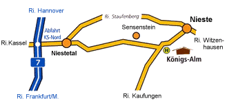 Nur ca. 150 m von der Königsalm entfernt befindet sich die Bushaltestelle Nieste Königs-Alm.